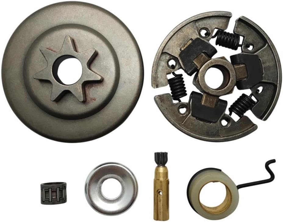 325 inch 7T clutch drum worm gear kit compatible with models 017 018 MS170 MS180 170 180 021 023 025 MS210 MS230 MS250 chainsaws.This replacement part is designed to fit the specified chainsaw types and includes a clutch drum and worm gear assembly.The kit supports proper function of the chainsaw's drive system and is intended for use during maintenance or repair.Installation requires standard tools and basic mechanical knowledge.Important: This product is an aftermarket alternative.Brand names mentioned serve only to show which devices it fits.
