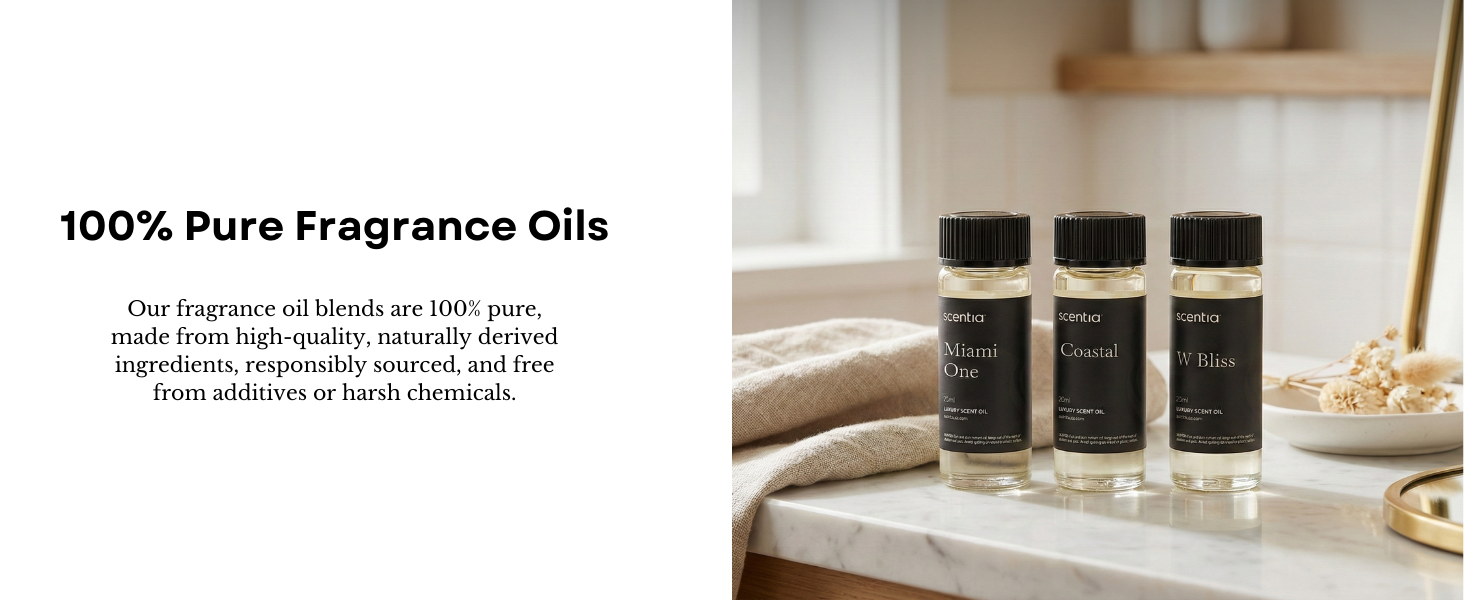 𝗖𝘂𝗿𝗮𝘁𝗲𝗱 𝗟𝘂𝘅𝘂𝗿𝘆 𝗙𝗿𝗮𝗴𝗿𝗮𝗻𝗰𝗲 𝗣𝗿𝗼𝗳𝗶𝗹𝗲𝘀 – Includes five refined scent experiences designed to elevate your space: Miami One (formerly My Way) — leather, sandalwood & cedar Coastal (formerly Cabana) — lemon, jasmine & musk W Bliss (formerly W Magic) — soft jasmine & airy musk Mystique Noir (formerly Velvet Noir) — amber, black tea & leather Dream Walk — white tea, aloe, vanilla & lily.