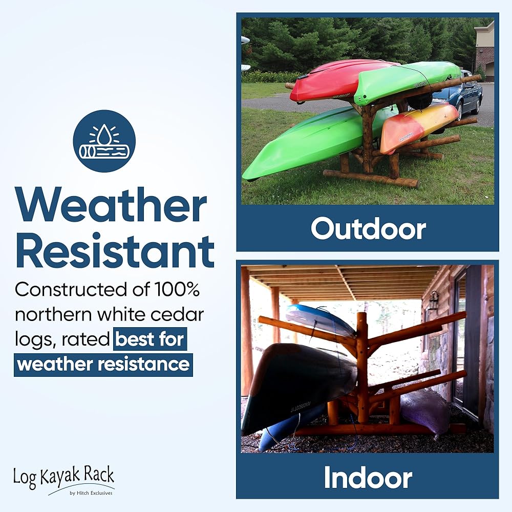 • COMPACT AND STURDY DESIGN: Proudly manufactured by Hitch Exclusives and made in Manitowish Waters, Wisconsin, USA, this kayak storage rack measures 51 inches in height, 84 inches in depth, and 53 inches in width. Weighing 110 pounds, it combines solid construction with versatile placement options. Ideal for use as a kayak rack for garage or outdoor kayak rack, it ensures easy access to your watercraft. These kayak holders are built to last and withstand the demands of heavy watercraft storage.