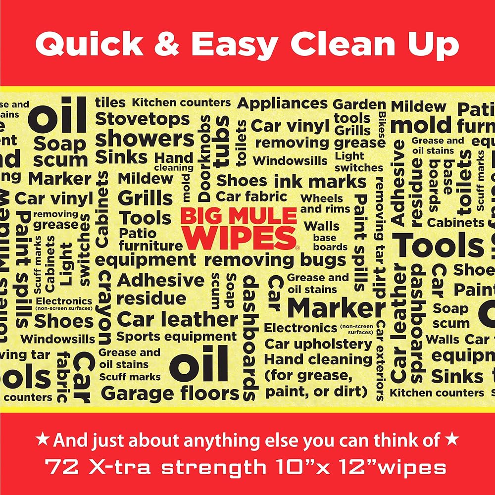 ✅ Experience Love At First Wipe – 2-Pack Industrial-Strength Cleaning Wipes: Extra-large 10" x 12" wipes remove grease, oil, ink, paint, tar, wax, adhesive, and stubborn grime from hands, tools, and surfaces. Perfect for mechanics, contractors, DIY projects, and home use.