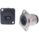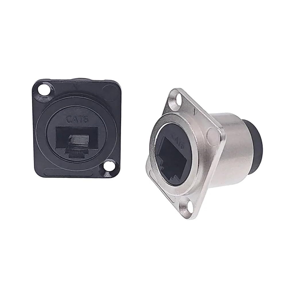 D Type RJ45 Connector CAT6 Female To Female Metal RJ45 Socket Panel Mounting Black Silvery 1Pcs