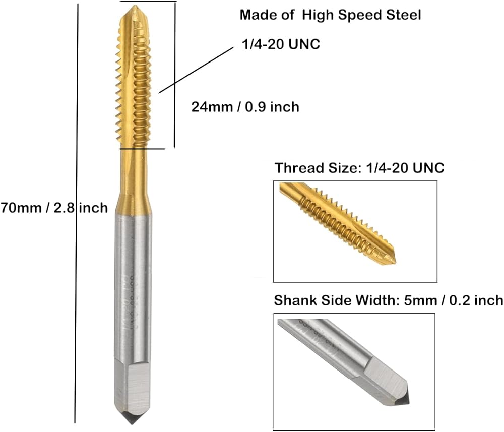 Function: As a dedicated screw thread tapping tool, its primary function is to create accurate and well - formed internal threads in various materials. Whether you're working on metal, plastic, or other suitable workpieces, this tap can precisely cut threads according to the 1/4 - 20 UNC standard. It enables the easy installation of corresponding screws or bolts, facilitating secure and reliable fastening in different applications.