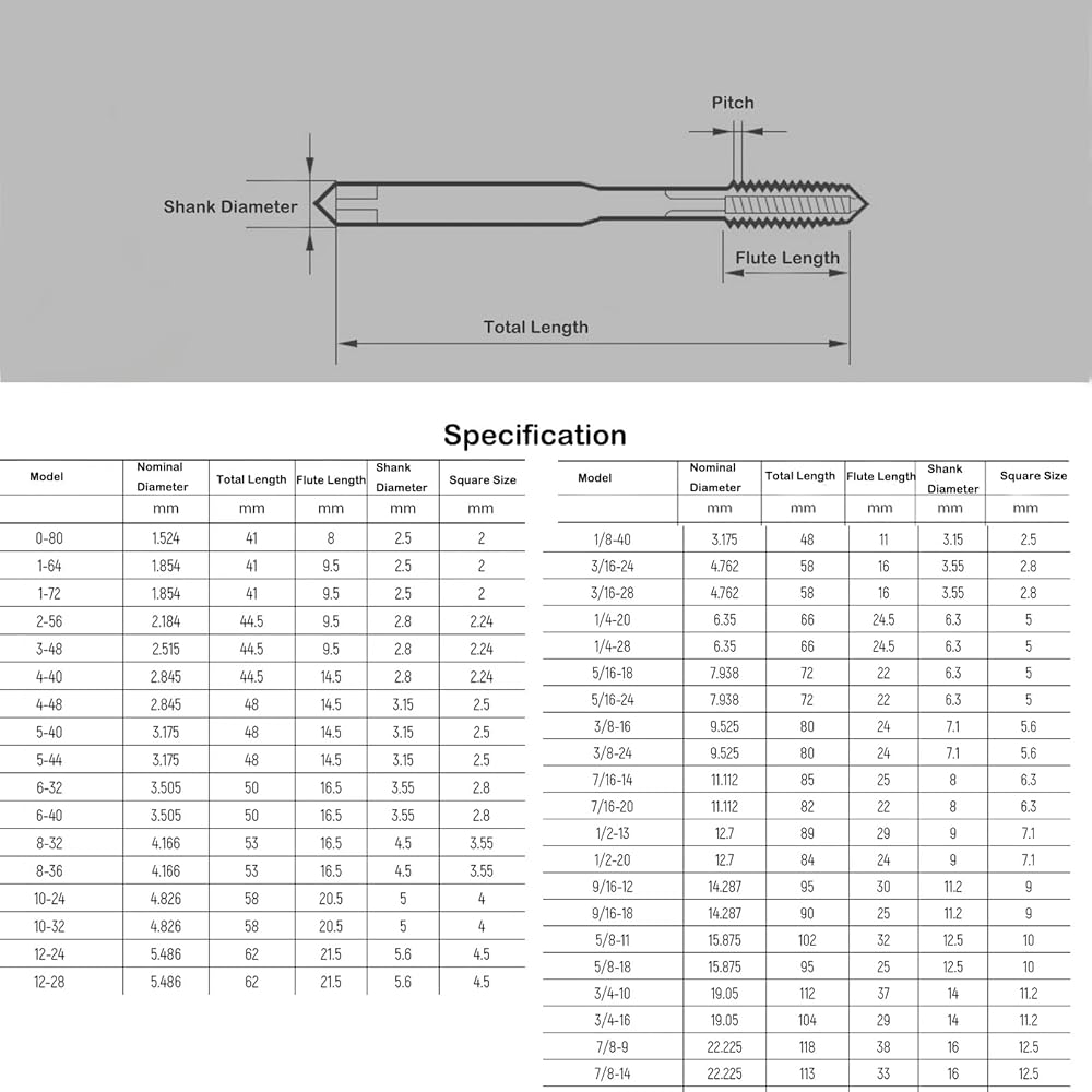 Note: When using this spiral point tap, it is crucial to select the appropriate cutting speed based on the material being tapped. Using too high a speed can cause overheating, leading to tool wear and poor thread quality, while too low a speed may result in inefficient cutting. Additionally, adequate lubrication is essential during the tapping process. Lubricants help to reduce friction, dissipate heat, and carry away chips, protecting both the tap and the workpiece.