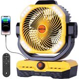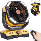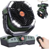Power Indicator & Foldable Hook Design & Widely Used - This camping fan rechargeable has 4 indicator lights 25% 50% 75% 100% to show the remaining battery level, reminding you to charge it in time, avoiding the appearance of insufficient power when you are outdoor camping fan. 360°rotatable hook design can be conveniently hung anywhere and anytime. And this portable fan can be widely used as table fan, tent fan, beach fan and other outdoor fans, also serve as a fan for home.