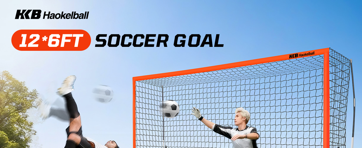 STABLE & ANTI-SAG STRUCTURE: Front poles run through side sleeves to keep the 12x6 net tight and upright. The hybrid steel and fiberglass rear frame enhances strength and flexibility. With upgraded U-shaped stakes, the goal stays stable, secure, and perfectly shaped during play