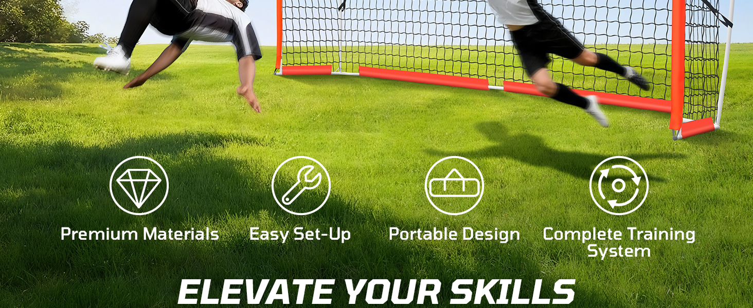 FAST & TOOL-FREE ASSEMBLY: Snap-lock quick-connect system enables setup and takedown in minutes with no tools required. It is the perfect time-saving solution for busy parents and coaches who want to transform any open space into a professional soccer field instantly