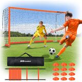 COMPLETE TRAINING KIT: Comes bundled with 12 high-visibility training cones and 1 professional agility ladder—perfectly paired with your goal. This all-in-one setup delivers everything you need for footwork, agility, and shooting drills in one portable package