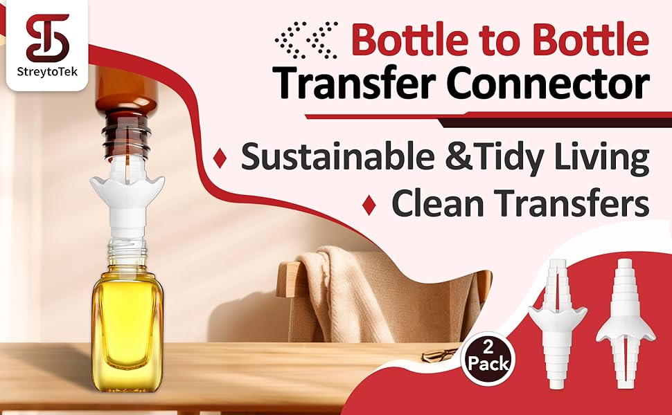 Efficient Liquid Transfer: This bottle to bottle transfer connector helps you use every last drop, enabling easy, mess-free transfer between containers to reduce waste