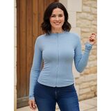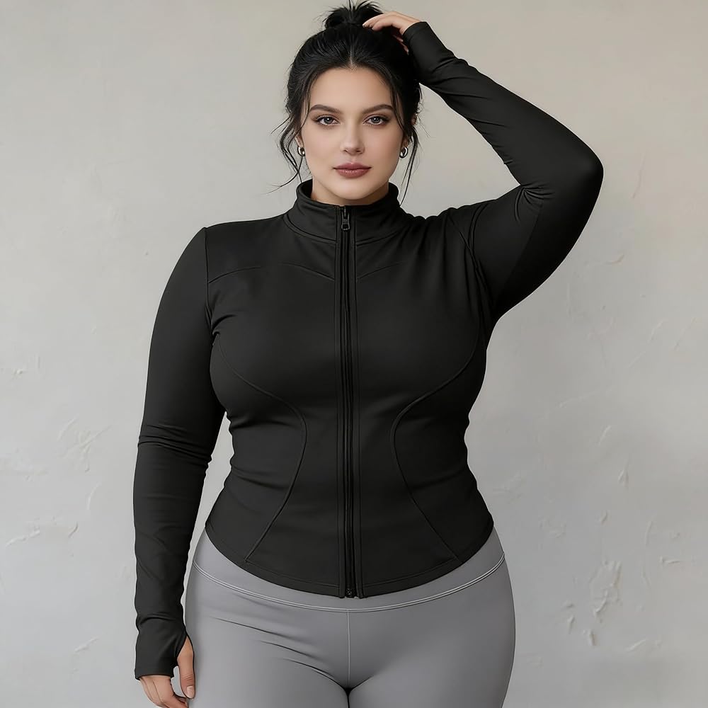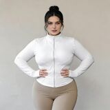 سترة رياضية نسائية سريعة الجفاف، بأكمام طويلة وسحاب - معطف للتمرين مناسب للياقة البدنية