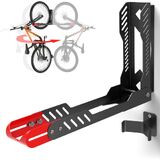 حامل جداري للدراجة دوار، مرآب موفر للمساحة، لا يتطلب رفع ثقيل، حامل جداري للدراجة، حامل حائط عمودي للدراجة يمكن أن يحمل ما يصل إلى 77 رطلاً، أحمر in Kuwait