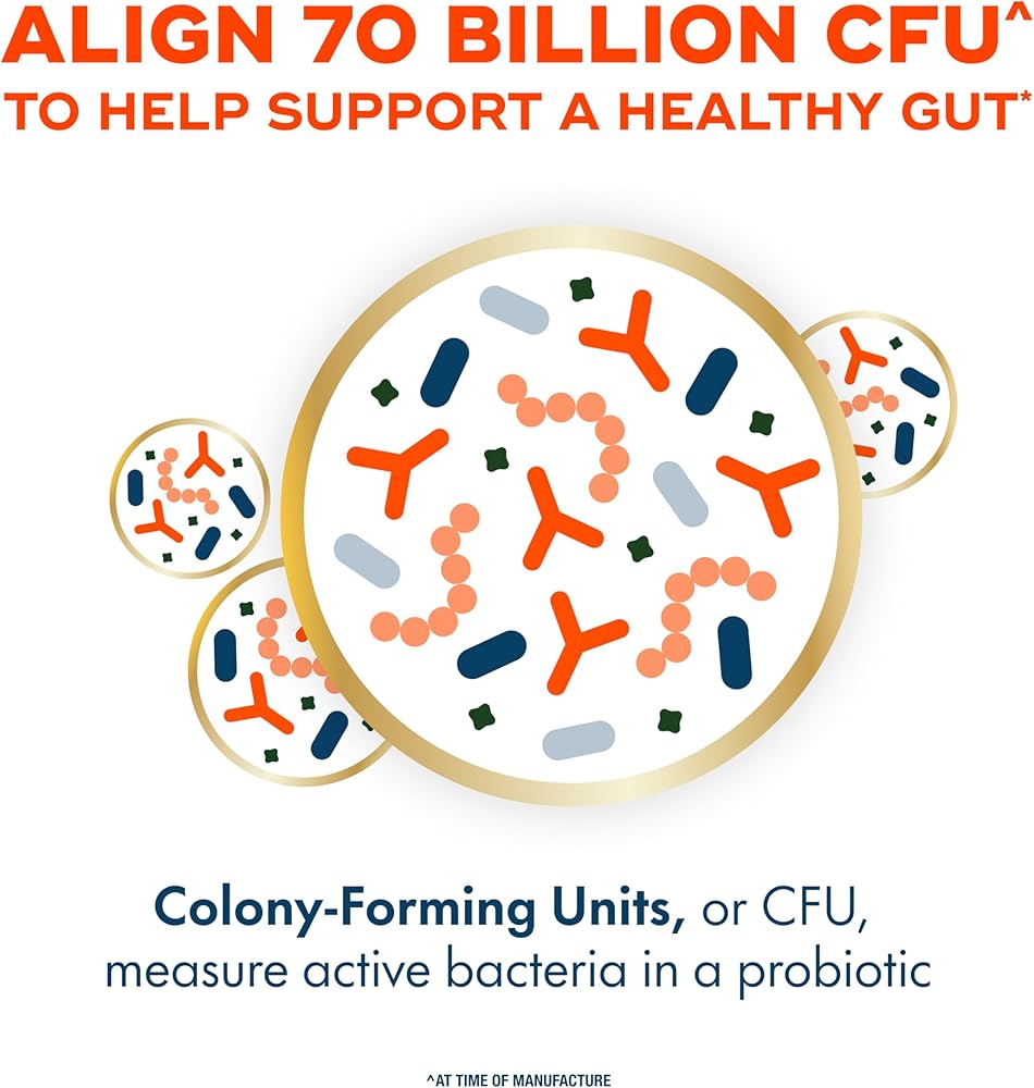• WHAT'S A CFU? Colony Forming Unit measures the viable bacteria in a probiotic. Align 70 Billion CFU includes 6 different strains of probiotics for women and men