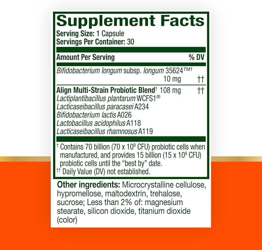 • BACKED BY SCIENCE: Align 70 Billion contains the unique Probiotic 35624 TM, which was developed by gastroenterologists and backed by 20+ years of scientific research.