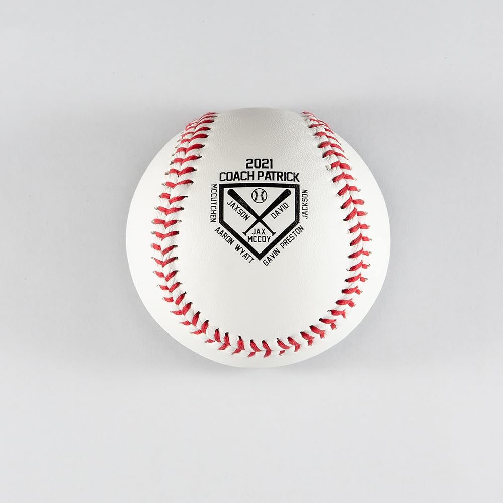 كرة بيسبول مخصصة من Buffalo Bottle Craft - أفضل هدية للمدرب، مقاس رسمي، جلد، 7.5 بوصة، مجموعة واحدة، قطعة واحدة، قطعة واحدة