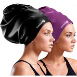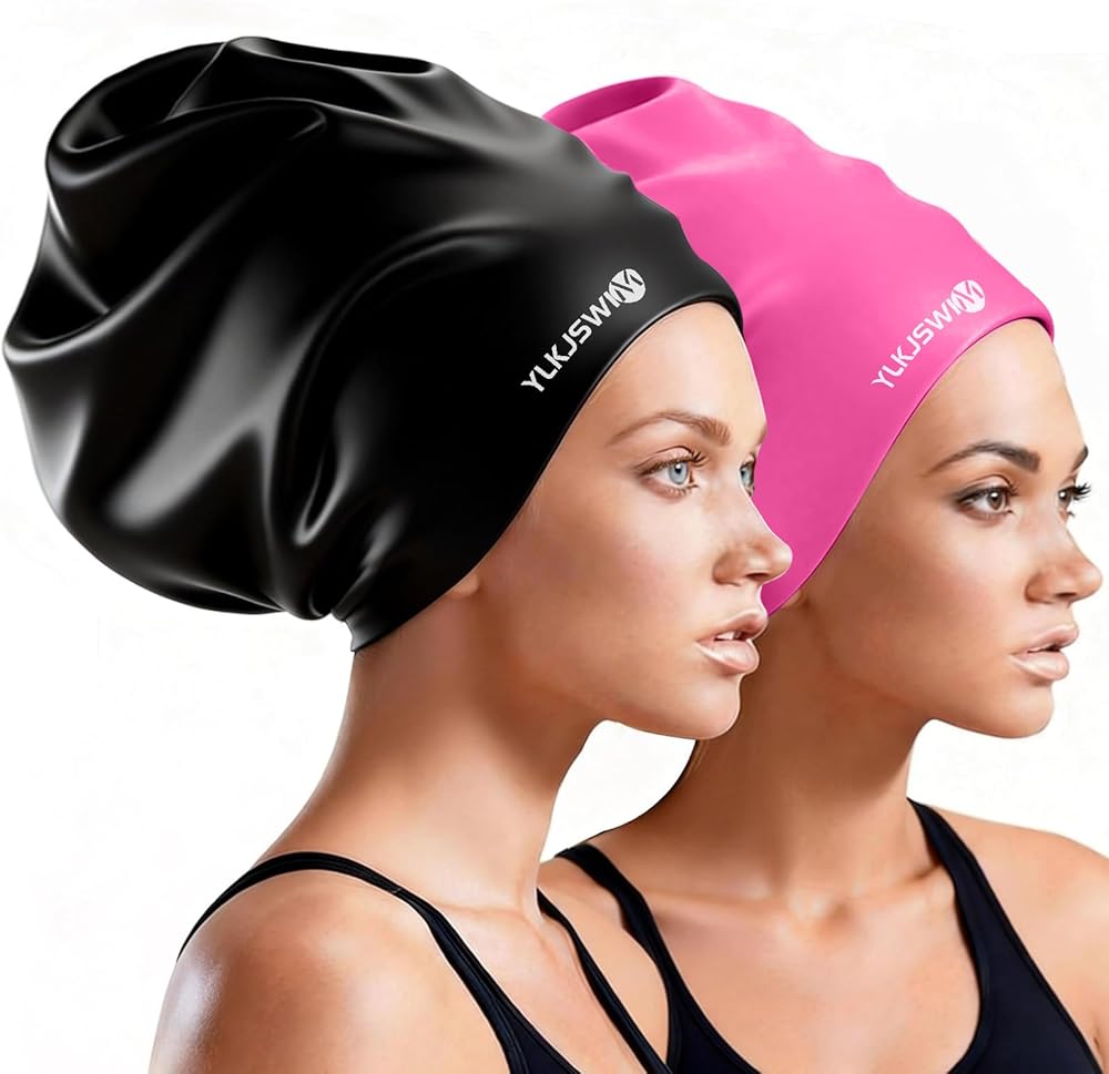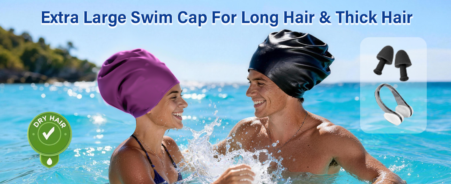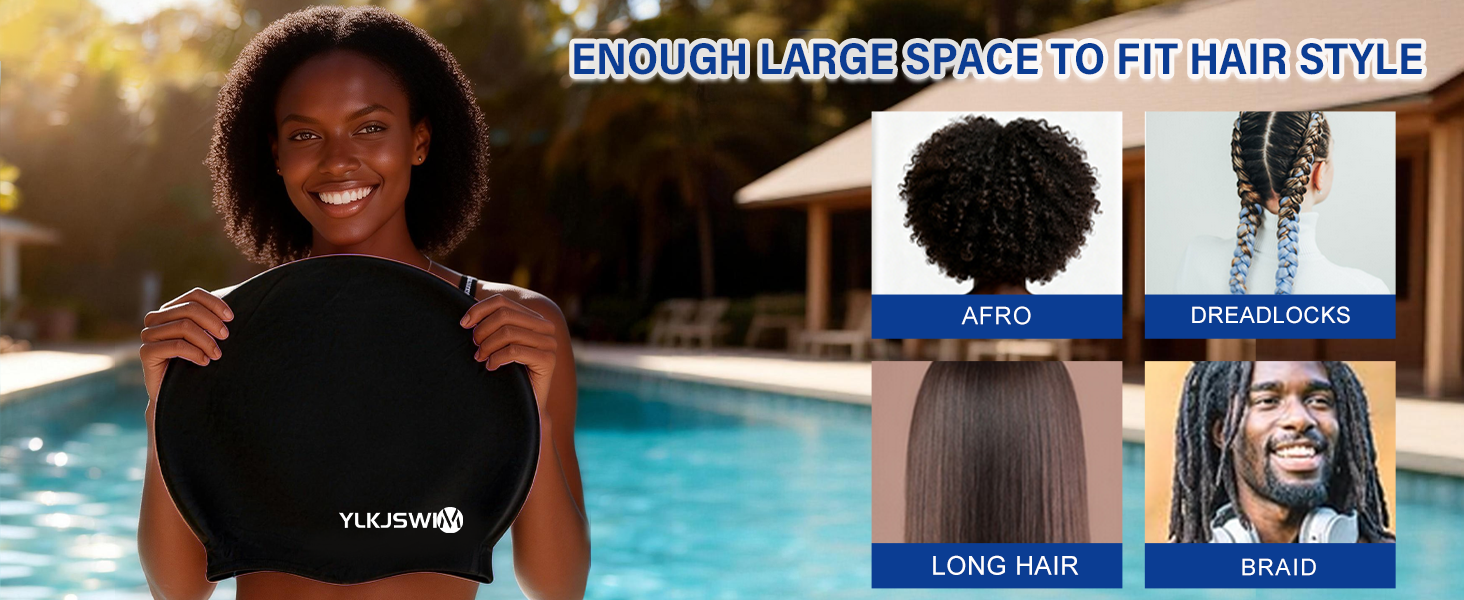 【Extra Large Swim Cap】 This unisex swimming cap features an extra-roomy design, making it ideal for those with a large head or voluminous hairstyles such asbraids, dreadlocks, extra long hair, thick curly hair, weaves, extensions, crochet braids, Afro hair, and more. Large swim cap for long hair offers a snug yet gentle fit that keeps hair out of the way and keeps it tangle-free, without causing discomfort or headaches from tightness.