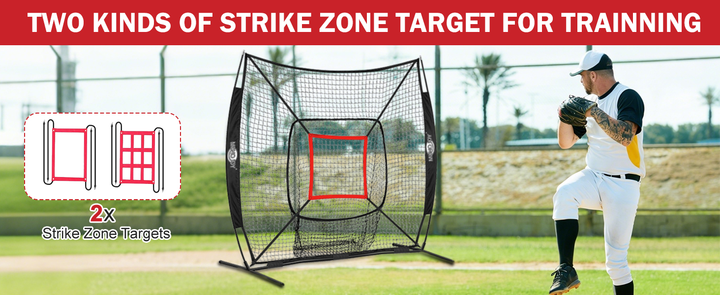 ✅VERSATILE PRACTICE ENVIRONMENT : Can it be used indoors? Absolutely. The sturdy, shock-absorbing design makes it safe for indoor basement or garage use. It also includes 4 ground stakes to ensure ultimate stability for outdoor field practice, even on windy days