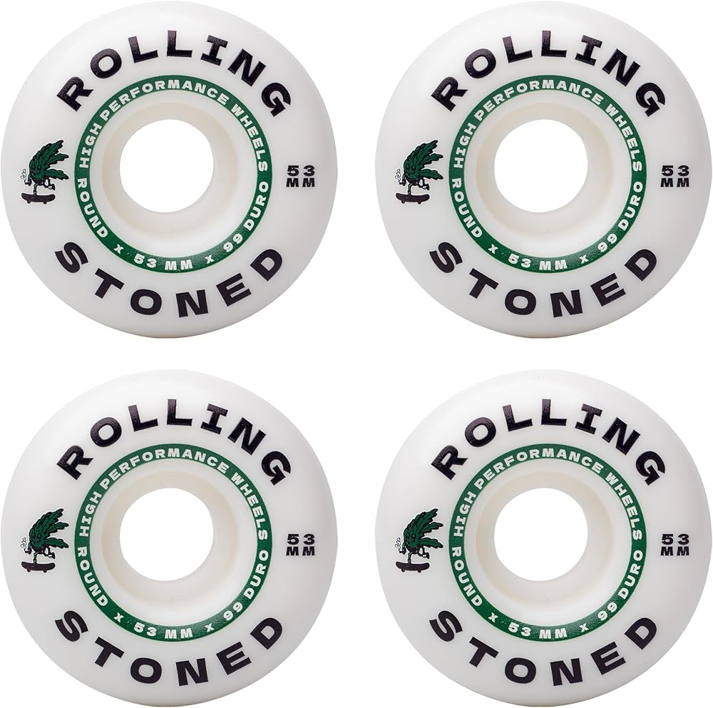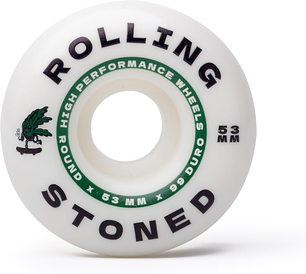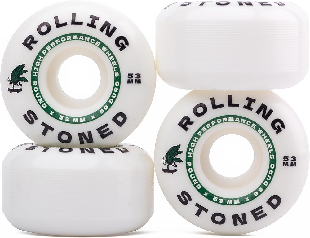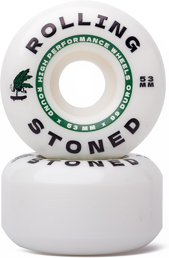 • CLASSIC SHAPE THAT RIDES SMOOTH - Rolling Stoned wheels use a classic rounded shape that rolls smooth and feels natural. They turn easily, slide when you want them to, and stay predictable whether you are skating street, park, or bowls.