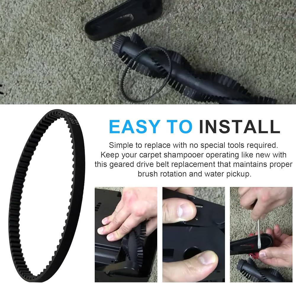 【Easy Installation】– Simple to replace with no special tools required. Keep your carpet shampooer operating like new with this geared drive belt replacement that maintains proper brush rotation and water pick up.