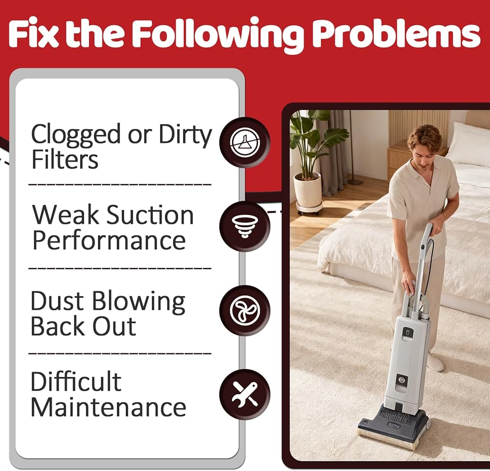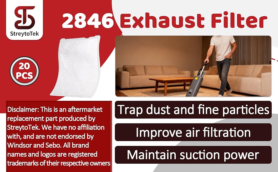Perfect Compatibility: Compatible with Windsor S12 S15 and Sebo Essential G1 G2 vacuums, designed as a precise 2846 exhaust filter replacement for part 8.614-140.0, ensuring a secure and stable fit