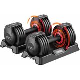【Home Fitness Necessity】SKOK adjustable dumbbell supports diverse strength training by changing different weights. Adjustment weights from 5lb to 25lb, even fitness beginners are very easy to use. It is a great choice for modify muscle lines and strong muscle fibers.