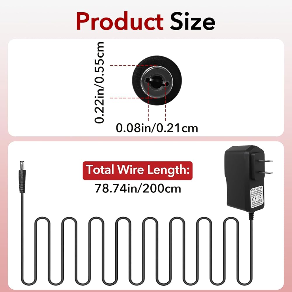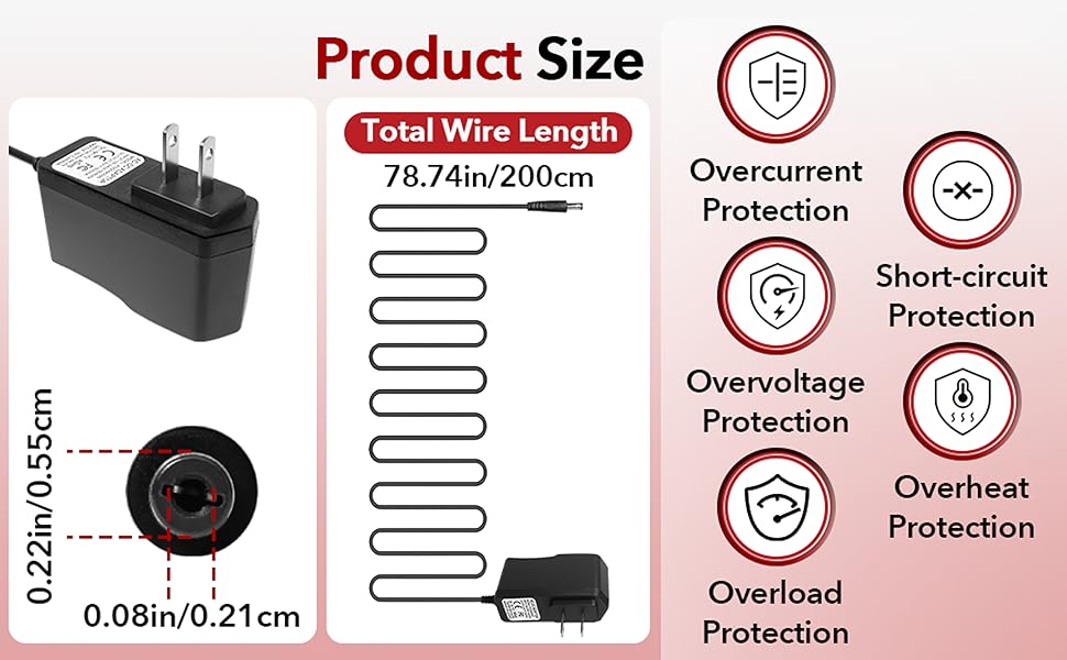 القطبية السلبية المركزية: يتميز محول الطاقة 9 فولت بتصميم سلبي مركزي لدواسات التأثيرات، مع قابس تيار مستمر 5.5 مم × 2.1 مم