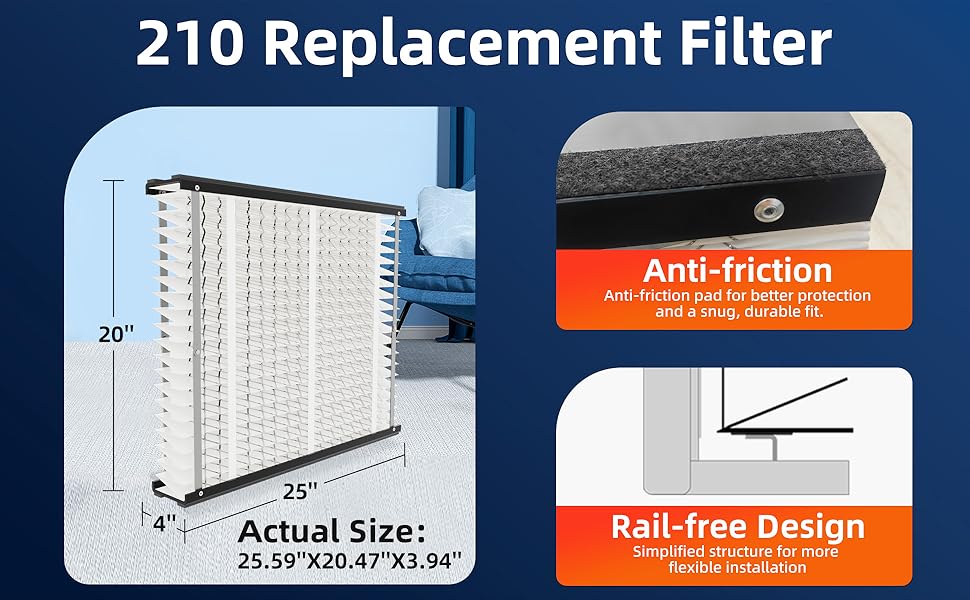 • حجم المنتج: 20 بوصة × 25 بوصة × 4 بوصة (معيار الصناعة). يرجى ملاحظة أن هذا ملصق مقاس شائع وليس البعد الفعلي. الحجم الفعلي لفلتر 210 هو 20.47 بوصة × 25.6 بوصة × 3.94 بوصة. لضمان المقاس المناسب، تحقق من الأبعاد الفعلية قبل الشراء.