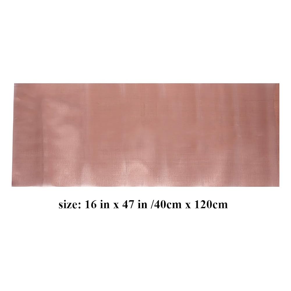 Pure Copper mesh size: 16 in x 47 in/ 40cm x 120cm, The size of aperture is about 0.22 mm, the wire is about 0.1 mm.