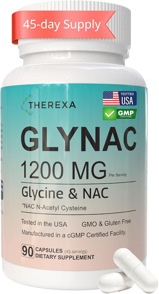 • 45 حصة لكل زجاجة - تحتوي كل زجاجة على 90 كبسولة، مما يوفر 45 حصة. وهذا يسمح بتناول 1200 ملجم يوميًا بشكل ثابت من NAC والجليسين، مما يضمن دعمًا طويل الأمد لنظام مضادات الأكسدة ومكافحة الشيخوخة.