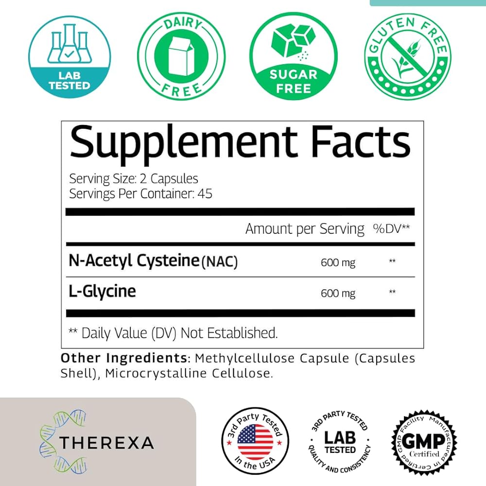 • 1200 ملجم من المكونات الفاخرة - تحتوي كل جرعة على 600 ملجم من N-Acetyl Cysteine ​​(NAC) و600 ملجم من L-Glycine، وهما من الأحماض الأمينية القوية المعروفة بدورها في تعزيز الصحة الخلوية المثالية.