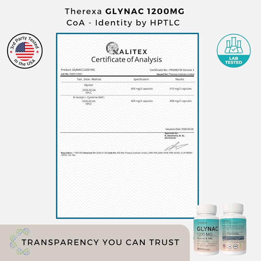 مكمل جليناك 1200 مجم - مكملات الجليسين والناك، تم اختبارها في الولايات المتحدة الأمريكية - 90 كبسولة