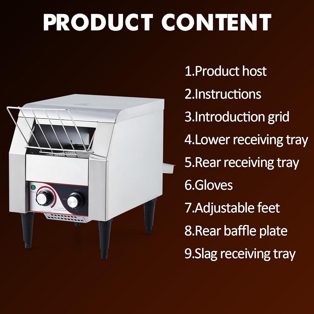 Easy to Clean & Maintain:Removable crumb tray, effective rear air vents, and food-grade chain net ensure low noise and quick cleaning.