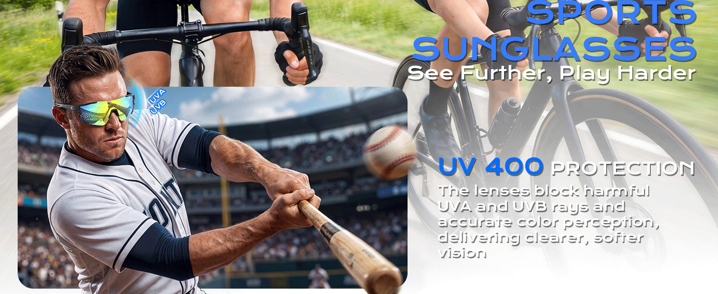 عدسات حماية من الأشعة فوق البنفسجية 400: تتميز نظارتنا الشمسية الرياضية بعدسات عالية الدقة بطبقة حماية من الأشعة فوق البنفسجية 400، تحجب 100% من الأشعة فوق البنفسجية فئة A والأشعة فوق البنفسجية فئة B، وتستعيد الألوان الحقيقية وتوفر رؤية أكثر وضوحًا ونعومة.