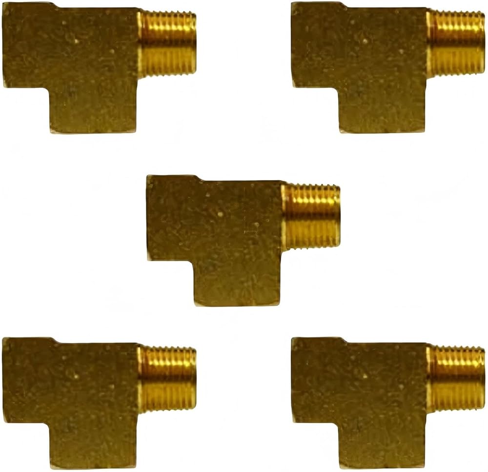 • for 1/4" FNPT x MNPT x FNPT Brass Barstock Street Tee 5-Pack Use this 1/4" brass street tee for grease, fuels, LP and Natural gas, refrigeration, instrumentation, and hydraulic systems. For use with brass, bronze, copper, steel, aluminum, and iron pipes. Meets specifications and standards of ASA, ASME, and SAE. Comes with 5 barstock tee fittings. Features 1/4" Female NPTF x Male NPTF x Female NPTF Temperature range: -65°F to +250°F (-53°C to +121°C) Vibration: Fair resistance Tolerance: +/- .02 Meets specifications and standards of ASA, ASME, and SAE Contains lead Comes With for 5 Barstock Tee Fittings