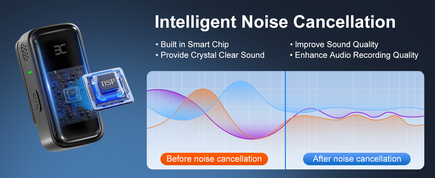 【أوضاع تقليل الضوضاء الذكية】DSP مدمج مع تقليل الضوضاء التلقائي واليدوي والتحكم في الصدى للحصول على صوت أكثر نظافة في البيئات الصاخبة.