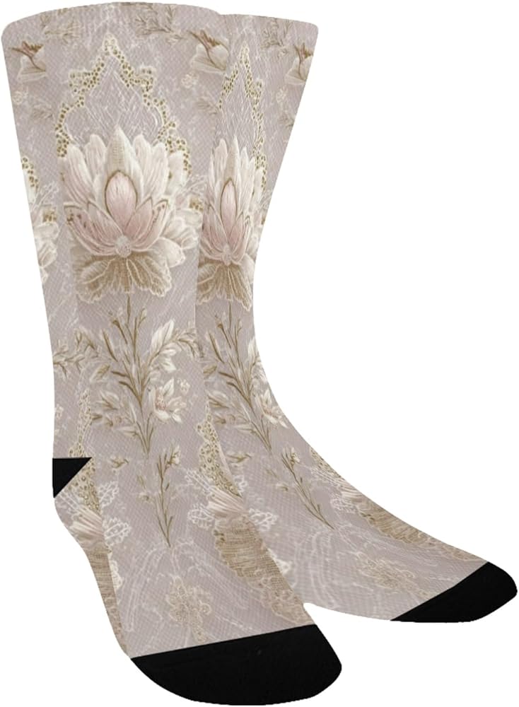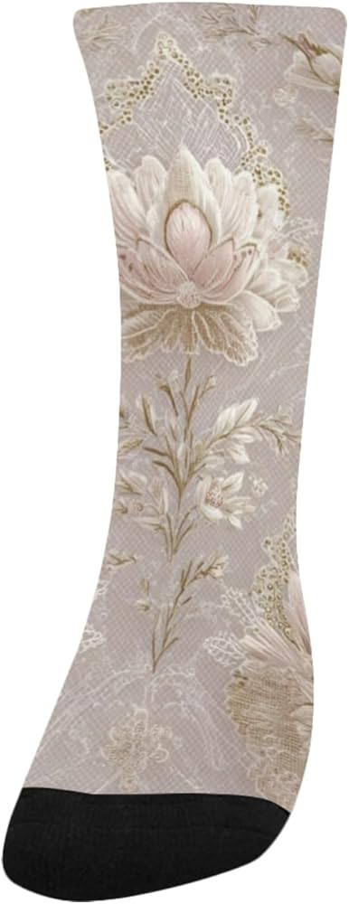 جوارب بيج للتنزه سيرًا على الأقدام من الدانتيل بطبعة زهور - جوارب شتوية حرارية سميكة دافئة للأطفال الصغار للأولاد والبنات للمدرسة، والارتداء اليومي والأنشطة الخارجية
