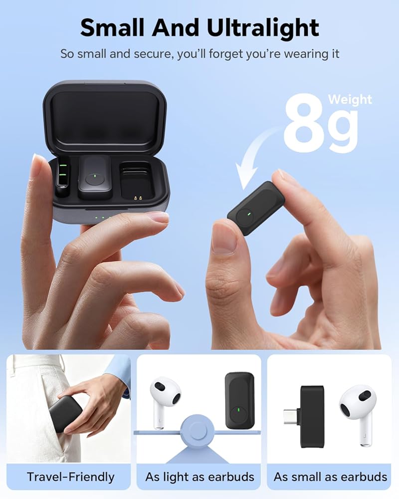 • 😄 [حقيبة شحن مدمجة للغاية لسهولة السفر] يزن جهاز إرسال ميكروفون Jubolion lavalier 8 جرام فقط - خفيف بما يكفي لنسيان أنك ترتديه. تزن علبة الشحن المغناطيسية بحجم الجيب 85 جرامًا فقط، وتسهل حملها وتخزينها وشحن مجموعة الميكروفون الخاصة بك في أي مكان - دون فقدان أي أجزاء أو بطاريات فارغة أثناء التصوير في الهواء الطلق. مصممة للمبدعين أثناء التنقل.