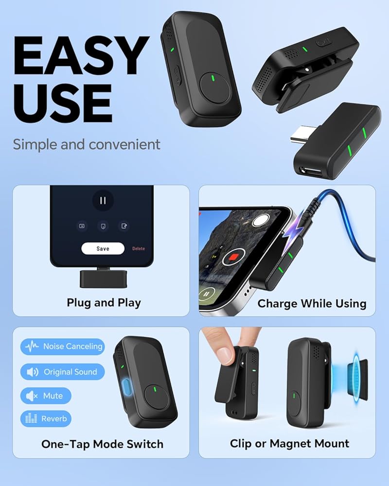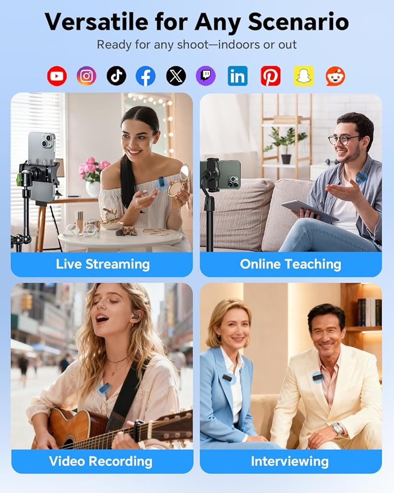 • 😄 [صوت واضح تمامًا مع إلغاء الضوضاء بالذكاء الاصطناعي وصوت هاي فاي] يتميز ميكروفون Jubolion اللاسلكي بشريحة تقليل الضوضاء AI متعددة الاتجاهات. يقوم هذا الميكروفون ذو الطية بتصفية ضوضاء الخلفية بذكاء مع الحفاظ على الأصوات الغنية والطبيعية. قم بالتبديل إلى الوضع الأصلي بنقرة واحدة للحصول على تفاصيل صوت Hi-Fi مذهلة - مثالي للتصوير في الهواء الطلق والمقابلات والبودكاست ومنشئي المحتوى على YouTube أو TikTok أو REDnote.