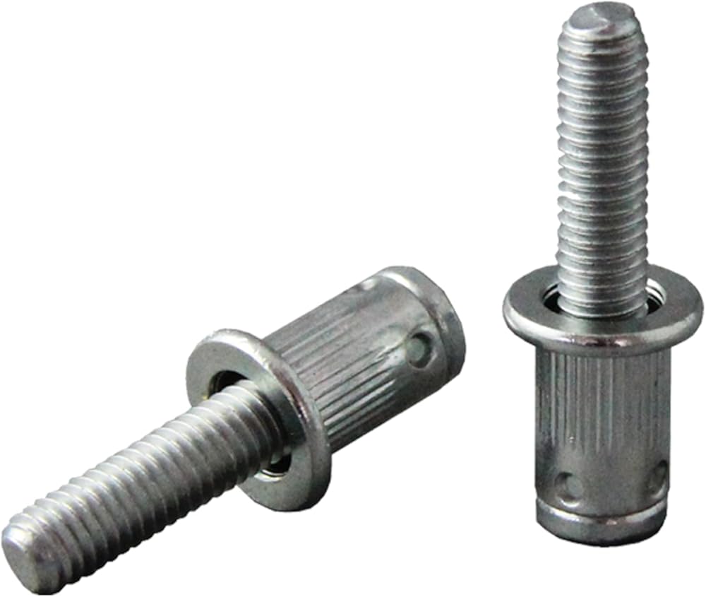 The Astro Tools RS5M 50pc M5 5mm Steel Rivet Studs are zinc-plated steel rivets with an M5x0.8 thread pitch. They have an outside diameter of 6.9mm and require a 7mm (9/32") drill hole. With a length of 12mm and an overall length of 25.5mm, these rivets are ideal for various fastening applications.