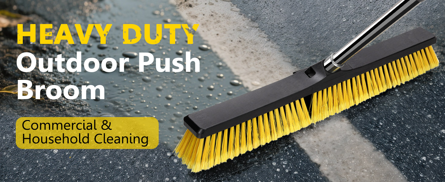 مكنسة الدفع الخارجية شديدة التحمل: مع التركيز على المتانة، تتميز مكنسة الهواء الطلق لدينا برأس فرشاة قوي وساق سميكة. يضمن هذا المزيج أن المكنسة يمكنها تحمل الاستخدام عالي الكثافة ومصممة لتدوم طويلاً.