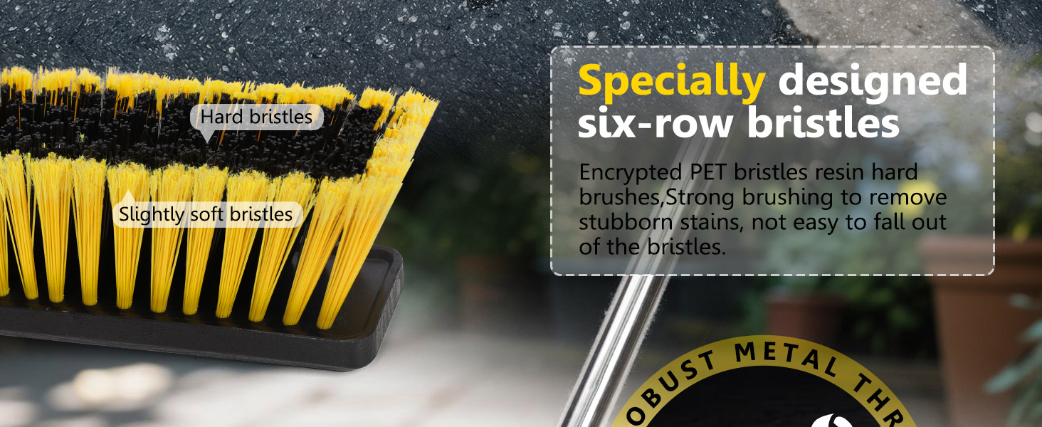 المكنسة ذات الشعر الخشن: تستخدم هذه المكنسة التجارية الخارجية تقنية خاصة ذات شعيرات مقسمة، والتي تعمل على تحسين قدرة التنظيف بشكل فعال. الشعيرات الداخلية للمكنسة الكبيرة قوية بما يكفي لإزالة الجزيئات الكبيرة، حتى الحطام الثقيل يمكن التعامل معه بسهولة. الشعيرات الخارجية أكثر نعومة ومناسبة لتنظيف الحطام الناعم.