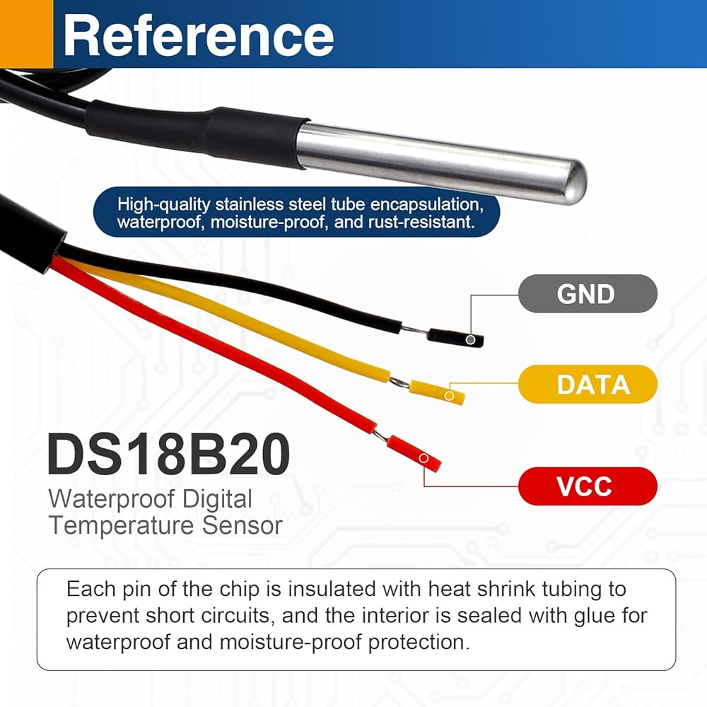• Premium materials: Stainless-steel probe with waterproof seal, approx. 6–7 mm Ø and 26–45 mm length, corrosion-resistant to reduce short-circuit risk. Supplied with ≈1 m PVC/PTFE-sheathed lead (cable is not fully waterproof or flame-retardant); cable maximum continuous temperature ≈85 °C. For long-term submersion or humid use, seal the cable joint with heat-shrink, silicone, or epoxy.