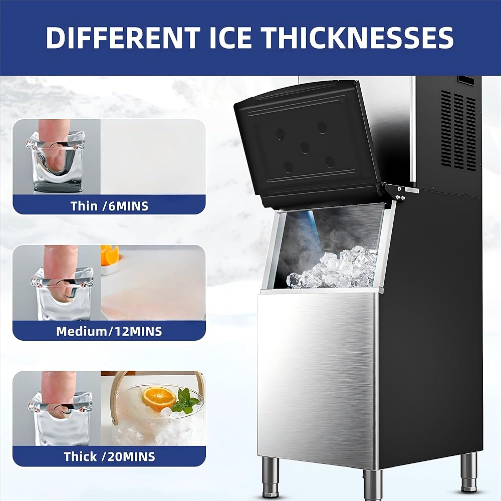 Durable, Reliable & Insulated - The ice maker commercial is constructed with high-quality materials and advanced manufacturing processes, ensuring its durability and reliability. Additionally, it incorporates insulation technology that helps maintain the temperature of the ice, keeping it frozen for longer periods. This ensures that your ice remains solid and doesn't melt quickly, providing a reliable supply of ice for your business.
