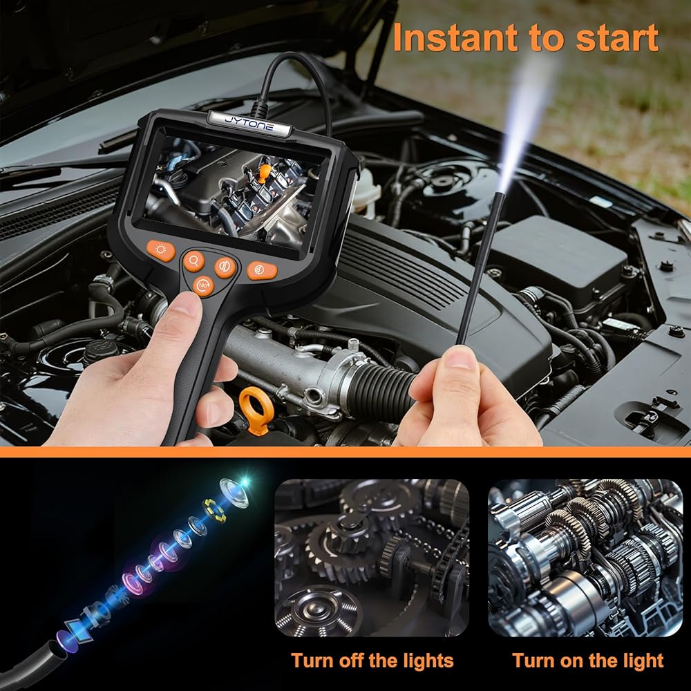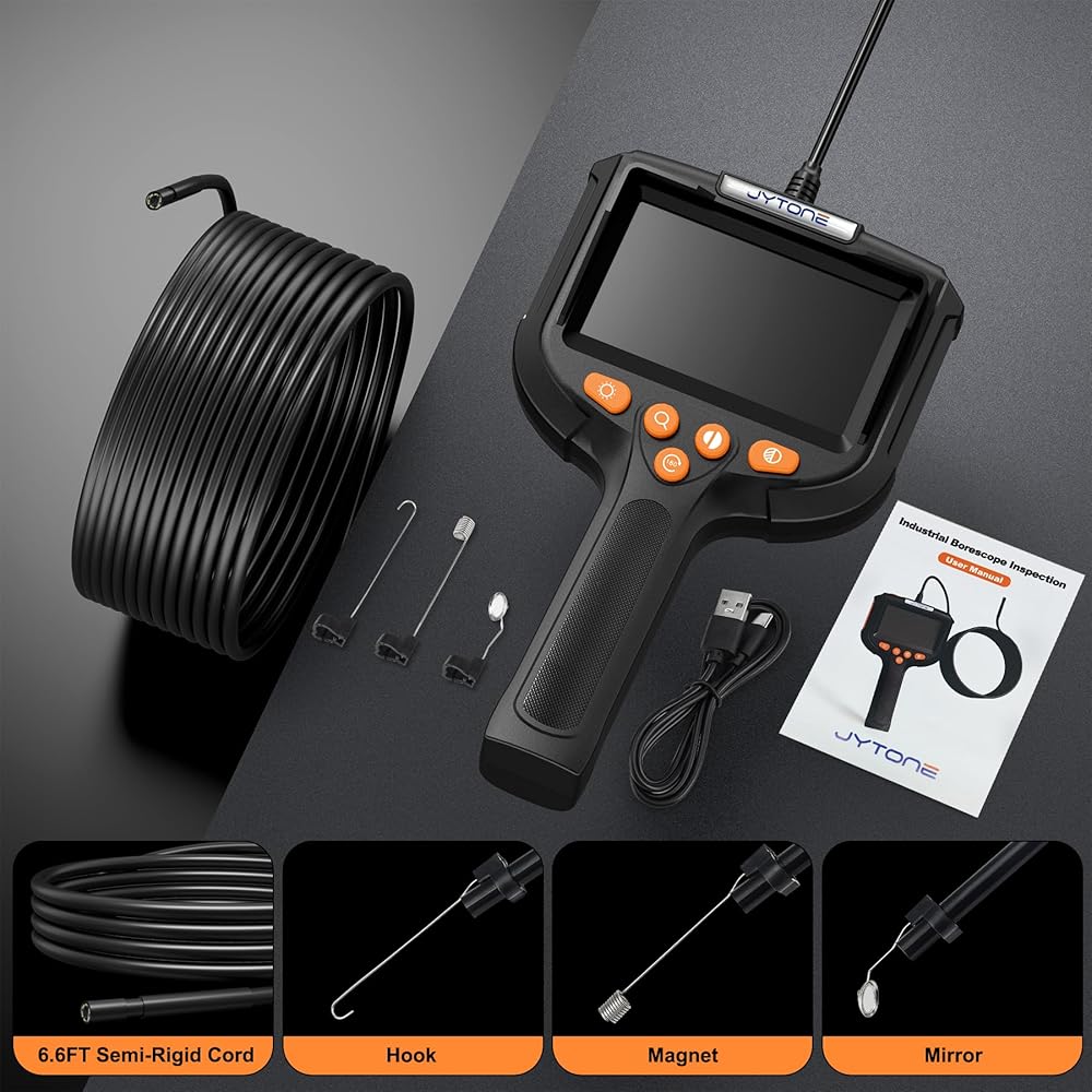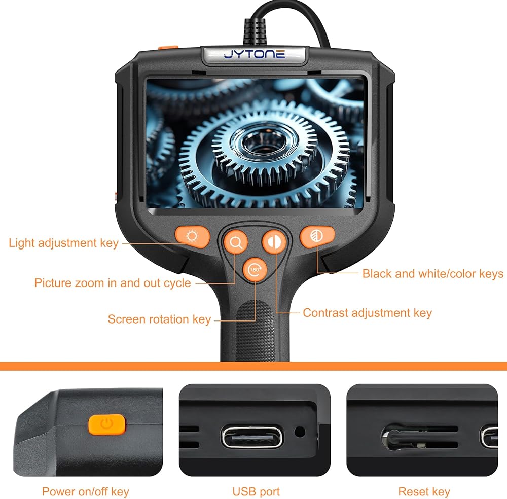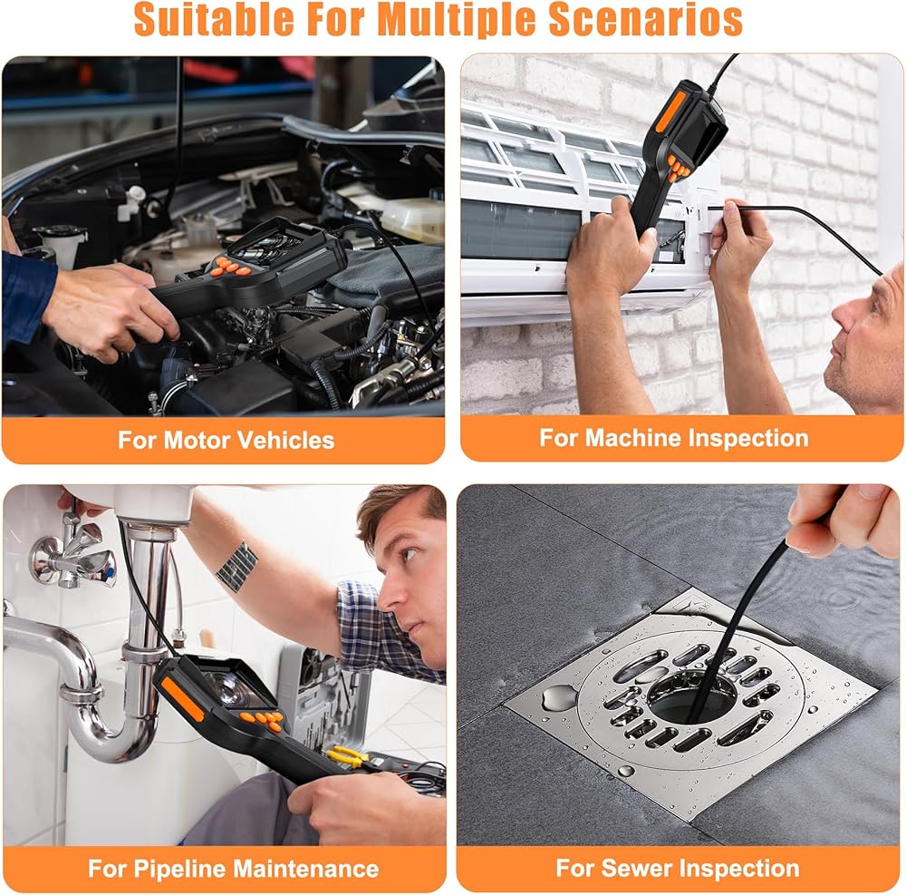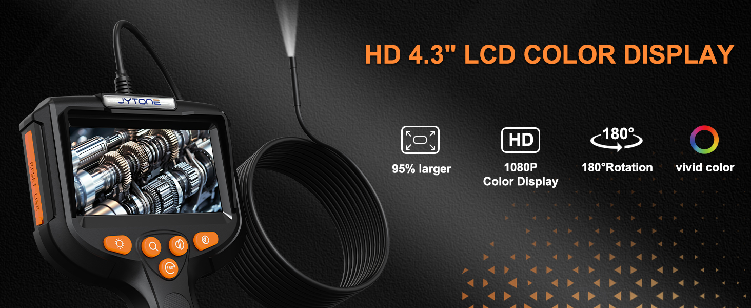 [شاشة عالية الدقة مقاس 4.3 بوصة - مرئيات واضحة في أي وقت] شاهد كل التفاصيل مع شاشة عالية الدقة مقاس 4.3 بوصة. توفر كاميرا الفحص دقة واضحة وتكبيرًا ودورانًا بمقدار 180 درجة وتعديل الألوان - مثالية لكاميرات فحص الأنابيب ومحركات السيارات والمساحات التي يصعب الوصول إليها.