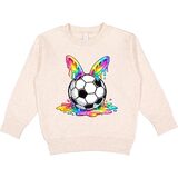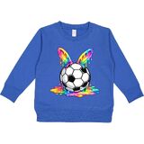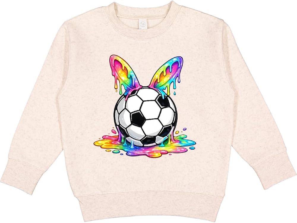 This vibrant Toddler Sweatshirt features a soccer ball with colorful, dripping rainbow ears. Perfect for adding a splash of fun and color to any outfit, it's a great choice for soccer enthusiasts and anyone who loves bold designs.