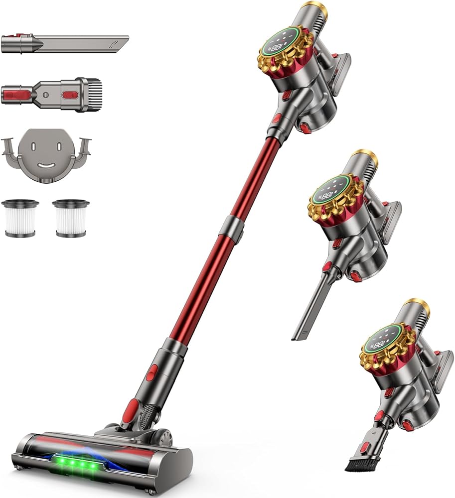 مكنسة كهربائية لاسلكية بقدرة 580 وات وقوة 50 كيلو باسكال للمنزل، مكنسة كهربائية تعمل بالبطارية لمدة 65 دقيقة مضادة للتشابك، قائمة بذاتها، مكنسة كهربائية خفيفة الوزن 8 في 1 للأرضيات الصلبة/السجاد/شعر الحيوانات الأليفة