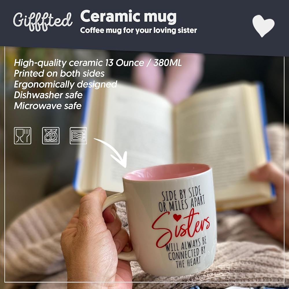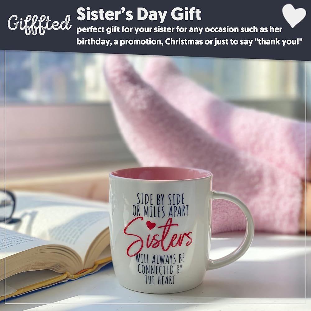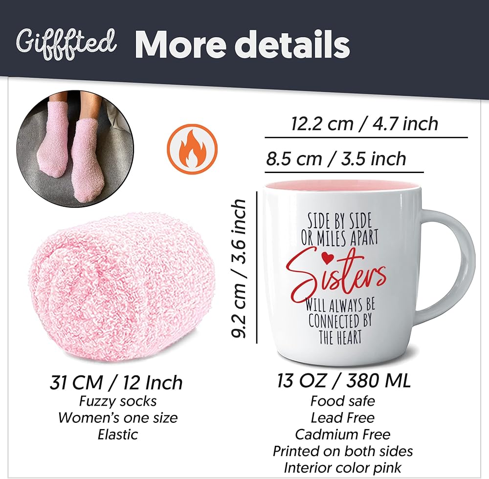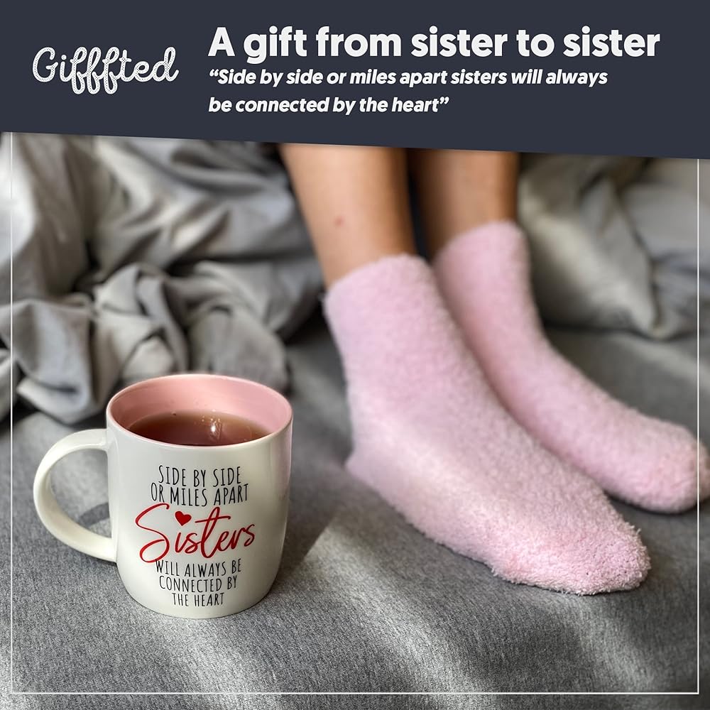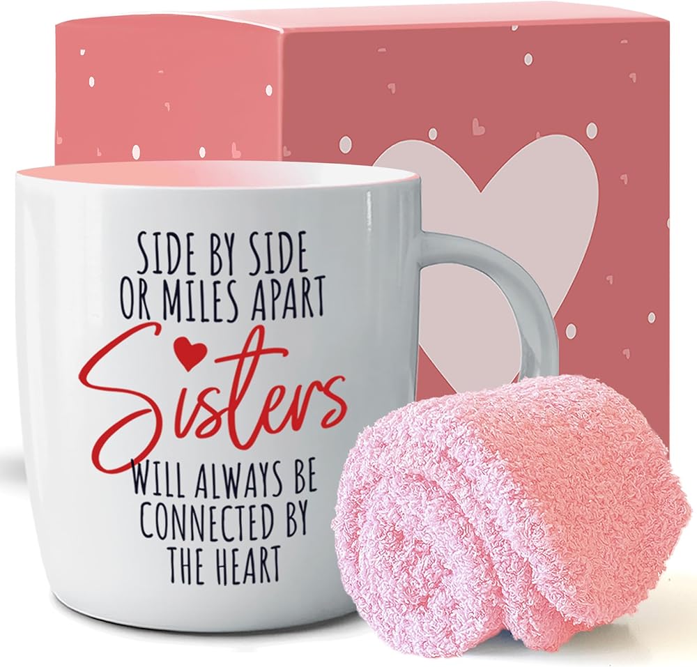 مجموعة جاهزة للهدايا للأخت: تأتي مجموعة الكوب والجوارب هذه في صندوق هدايا جميل وهي مثالية للأخوات لإظهار حبهن.