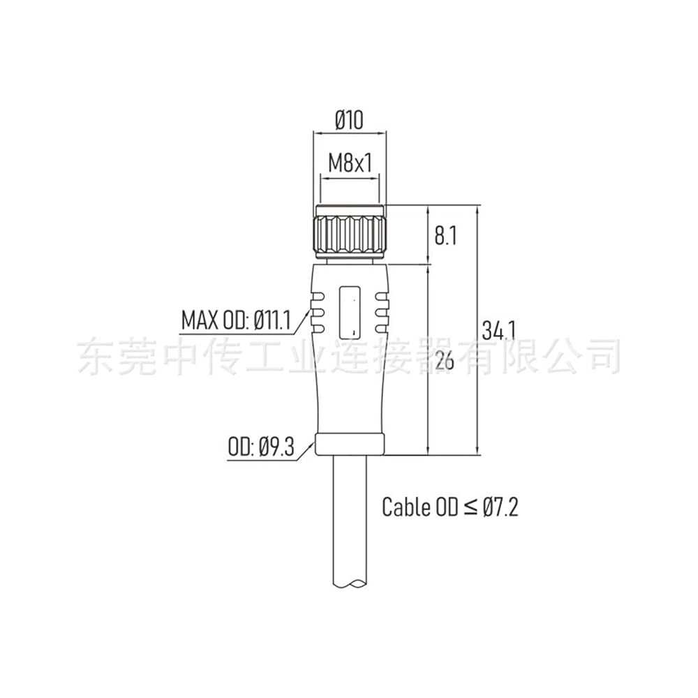 M8 Connector 3pin A-Code Female Straight Head molding precast with Wire Aviation