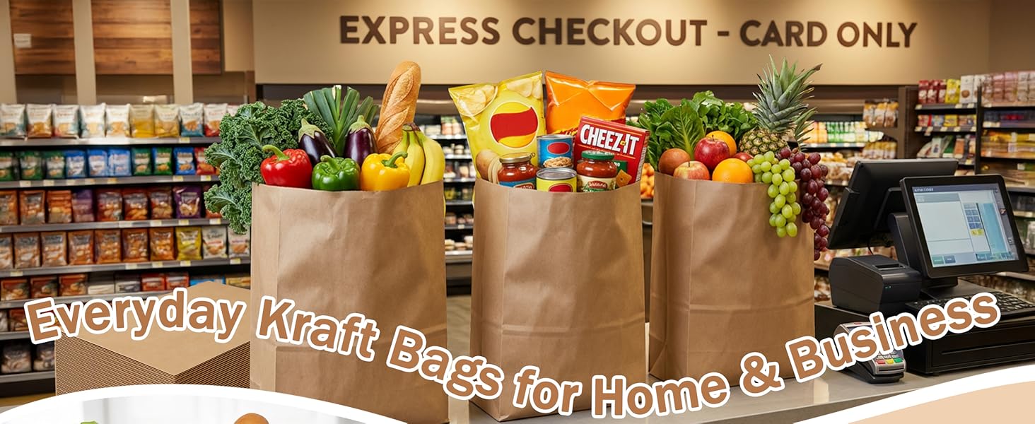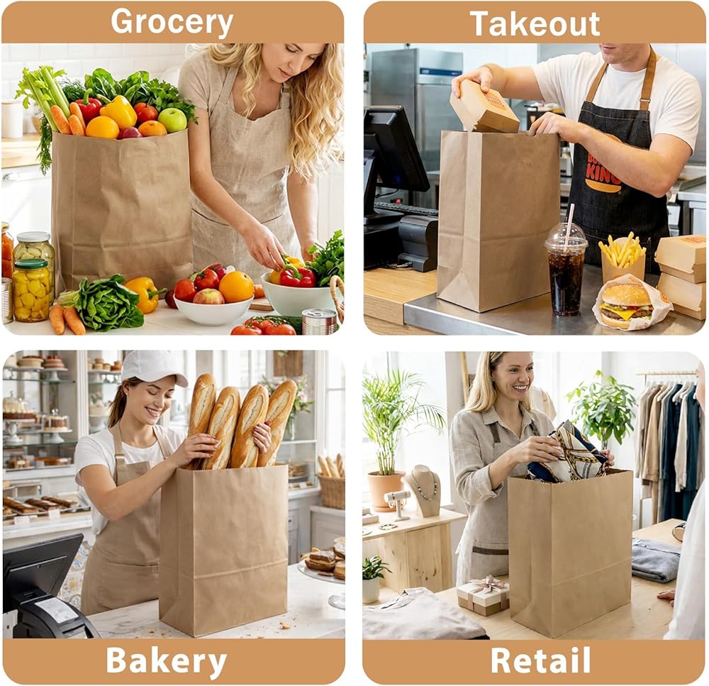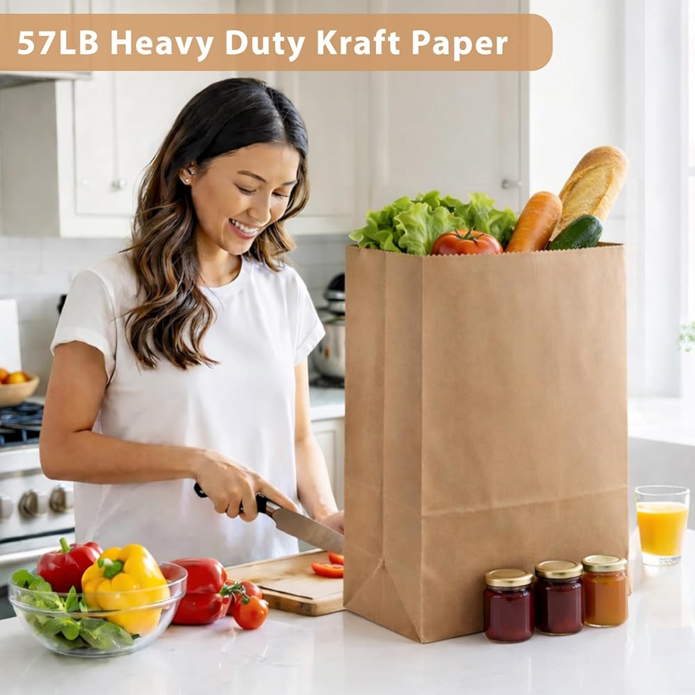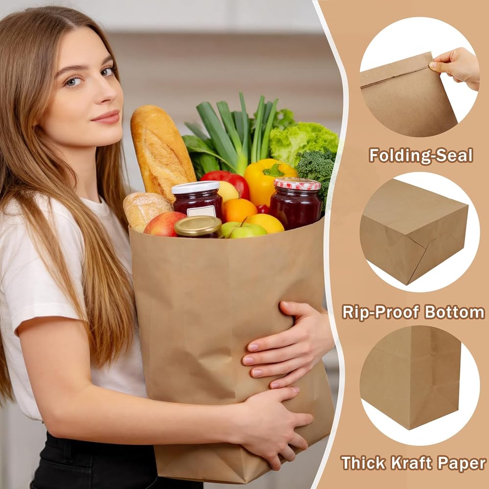• استخدامات متعددة: هذه الحقائب البنية الكبيرة مثالية لمجموعة واسعة من التطبيقات بما في ذلك تسوق البقالة والتخزين والتعبئة الخارجية وحتى المشروعات التي تصنعها بنفسك. سواء للاستخدام الشخصي أو العمل، فإن أكياس البقالة الورقية هذه توفر حلاً موثوقًا ومتعدد الاستخدامات.