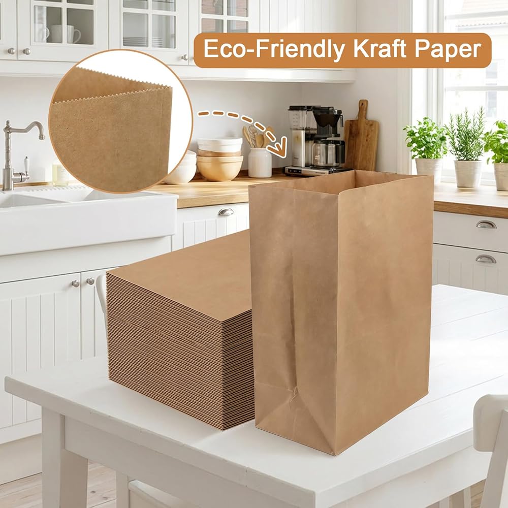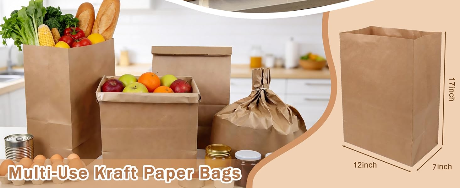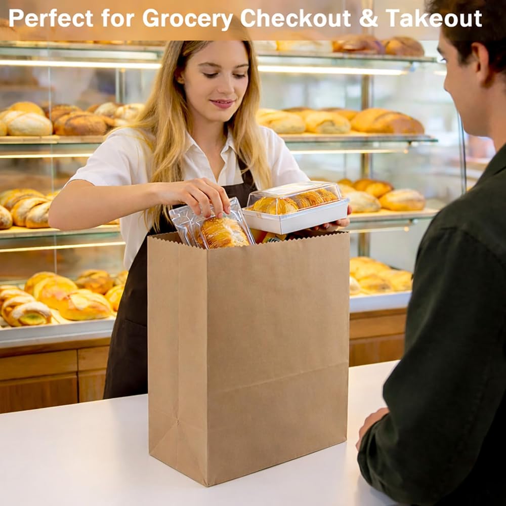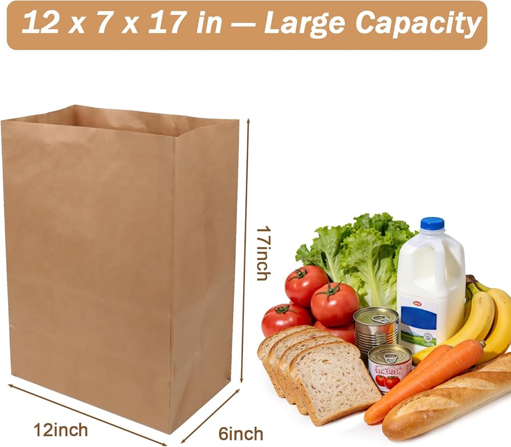 • تصميم ذو سعة كبيرة: بقياس 12 × 7 × 17 بوصة، توفر هذه الأكياس الورقية البنية الكبيرة مساحة كبيرة لحمل البقالة أو تخزين الأشياء الأكبر حجمًا. مثالية لمتاجر البيع بالتجزئة أو الاستخدام المنزلي، يمكن لهذه الحقائب الورقية الكبيرة أن تلبي جميع احتياجات التسوق الخاصة بك
