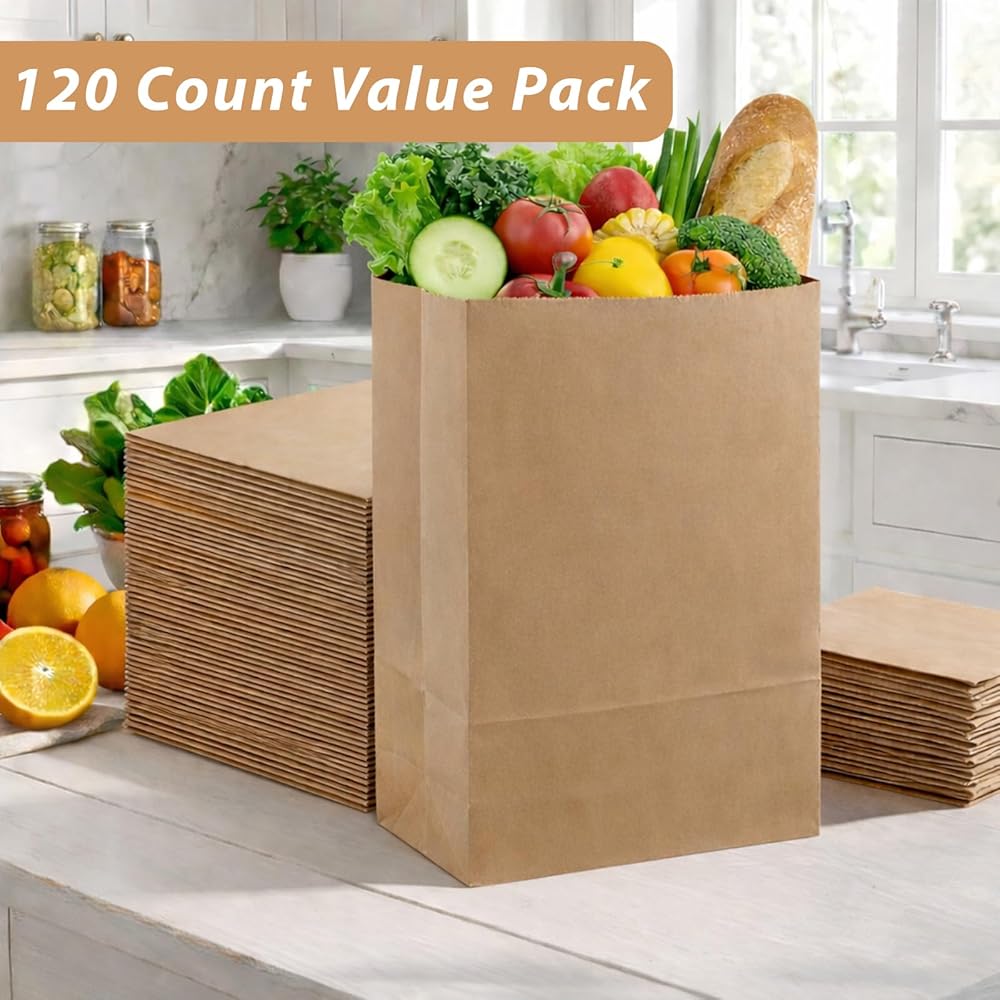 • سهلة الاستخدام والتخزين: مع تصميم سفلي مربع، تقف حقائب كرافت الكبيرة هذه في وضع مستقيم لسهولة التحميل والتخزين. مع 120 كيسًا في كل عبوة، فهي مثالية للاستخدام المنزلي والعملي، وتوفر كمية وفيرة لرحلات التسوق العادية أو التخزين الكبير.