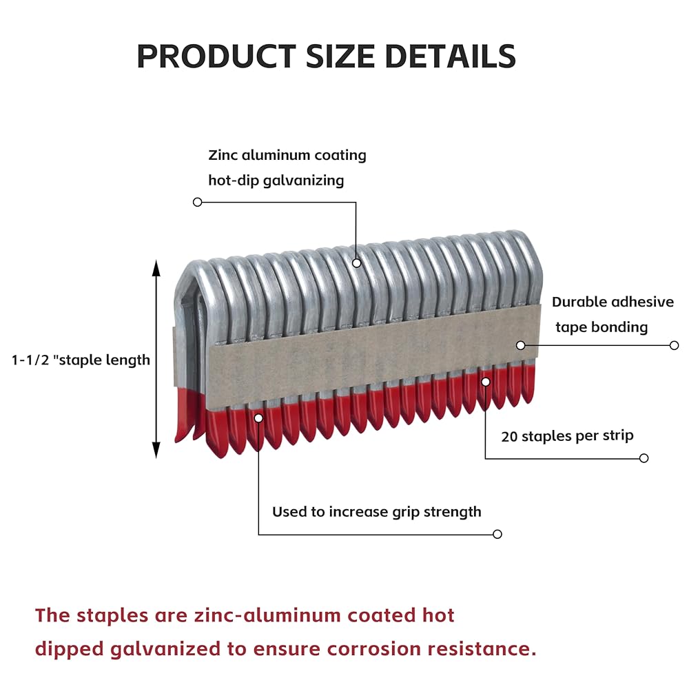 DURABLE CONSTRUCTION & DESIGN:1.5-inch 9-gauge heavy-duty galvanized wire delivers superior strength; diamond crown design works with larger wire sizes and small plastic moldings; barbed divergent legs boost holding power